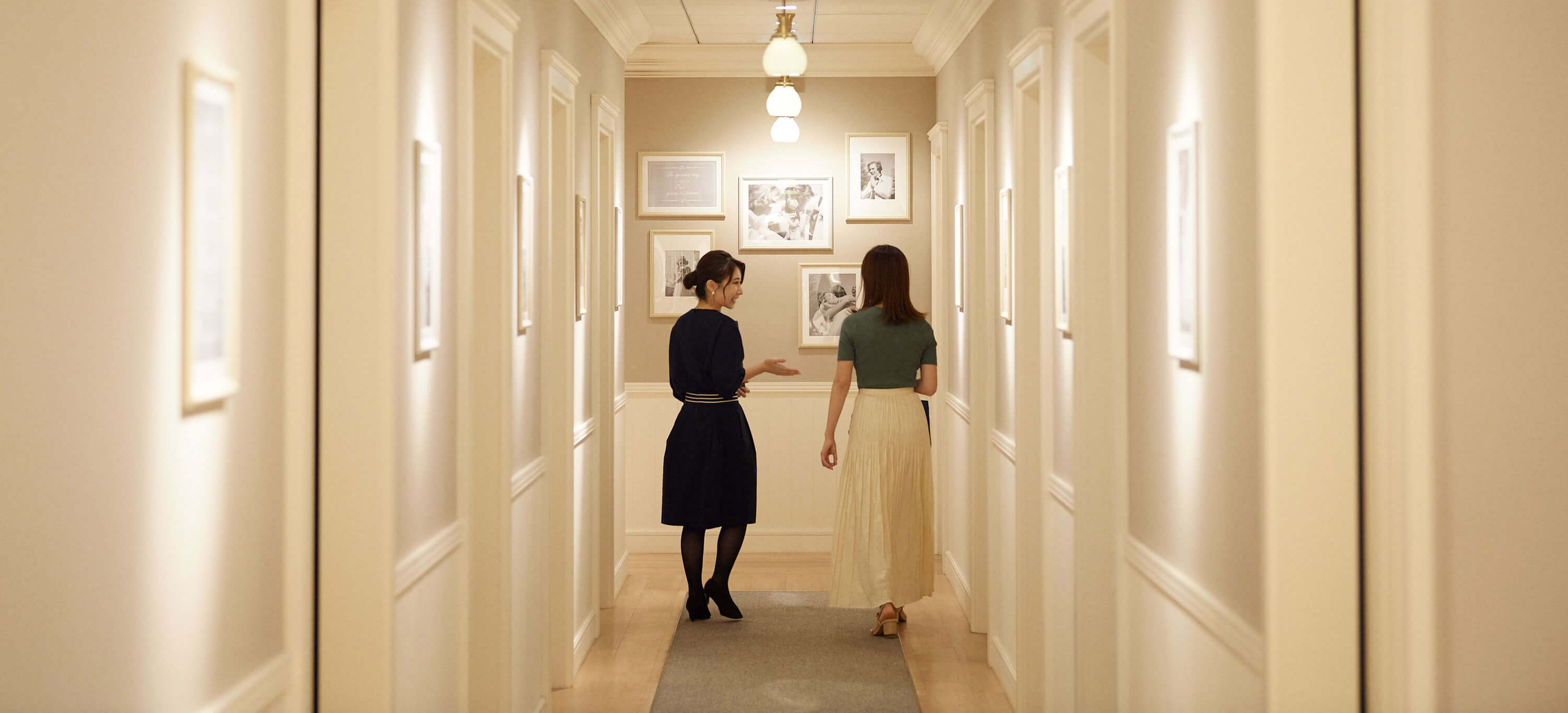- 全国にドレスサロンをご用意しておりますので、結婚式の約半年前~5か月前にドレスサロンにお越しいただき、実際にご試着してドレスやタキシードをご決定いただきます。また、ドレスコーディネーターがぴったりの衣装選びをお手伝いいたします。