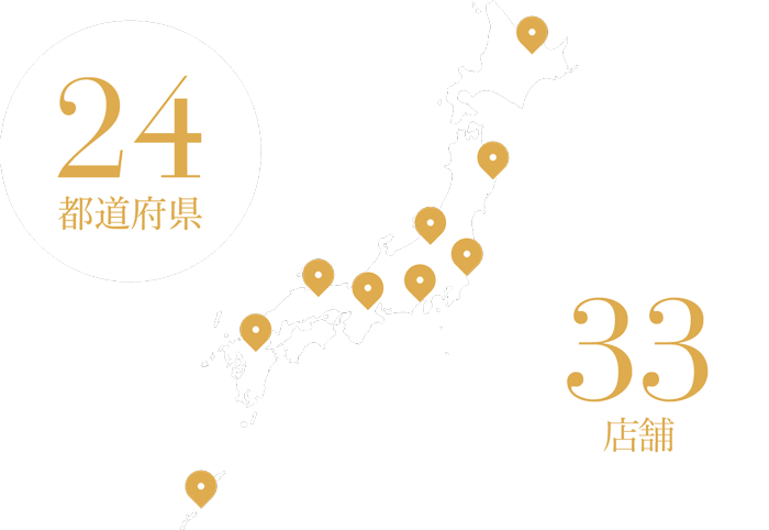 全国24都道府県、33店舗展開