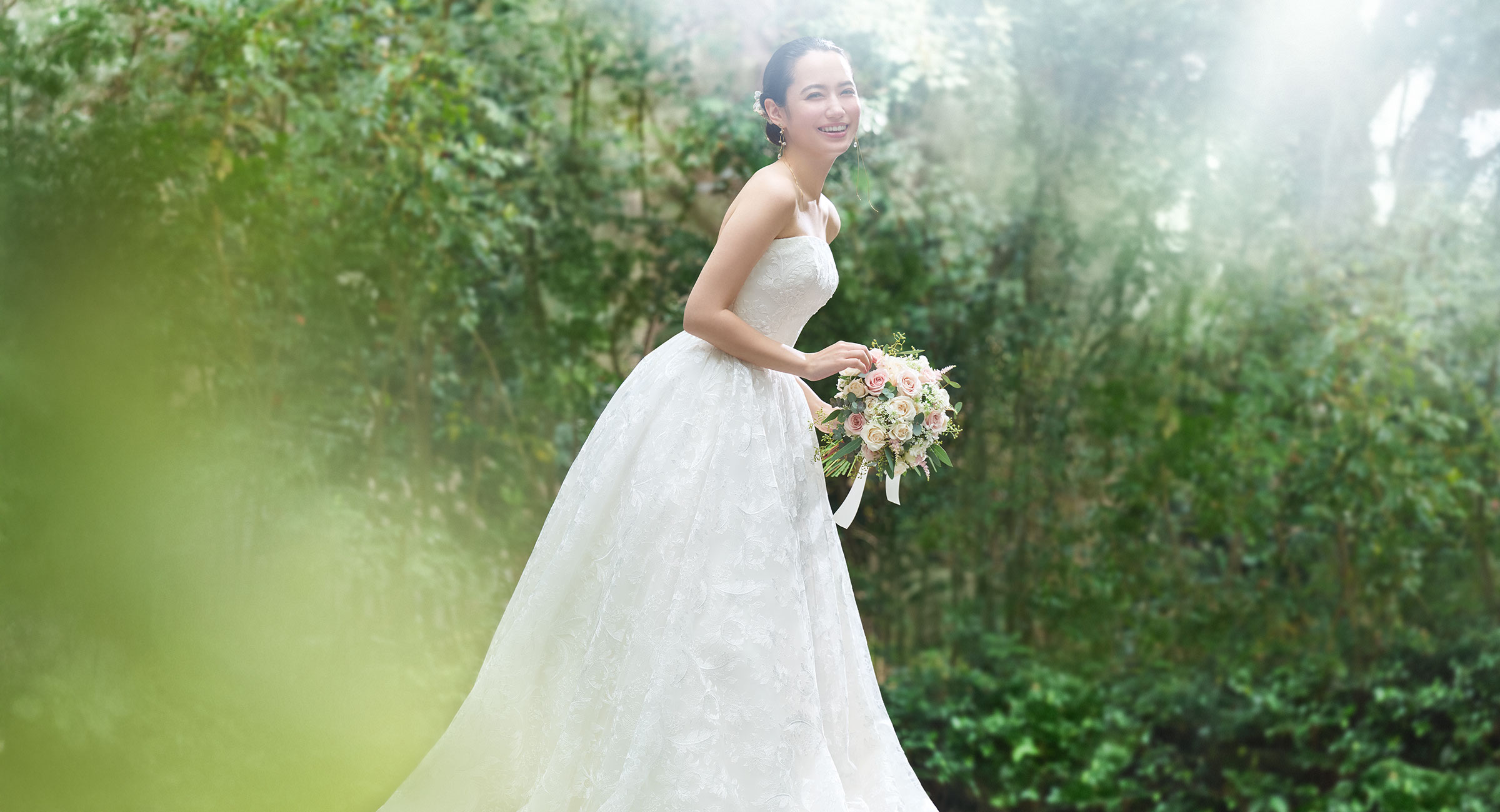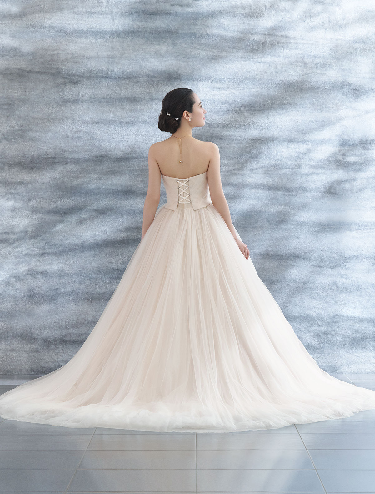 柔らかな優しい素材がエアリーなシルエットを描き、360°どの角度から見ても華やかさを際立てます。
