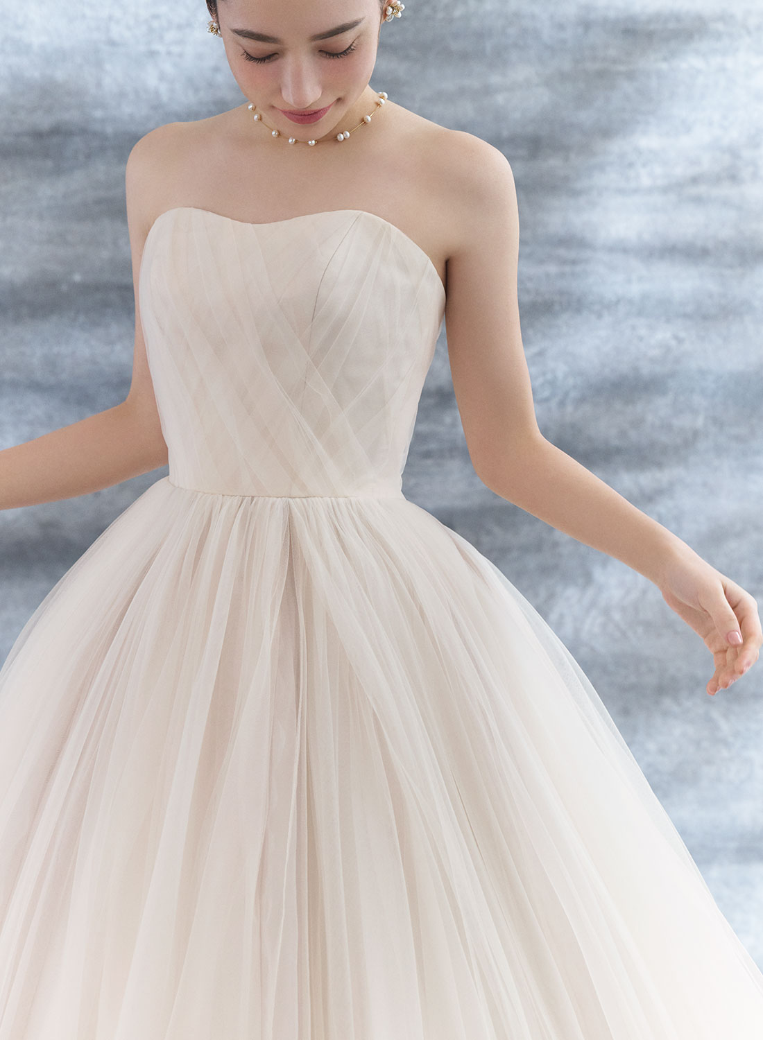 チュールをたっぷり使って施されたギャザーが、印象的なデザインと美しいウエストラインを作り上げます。
