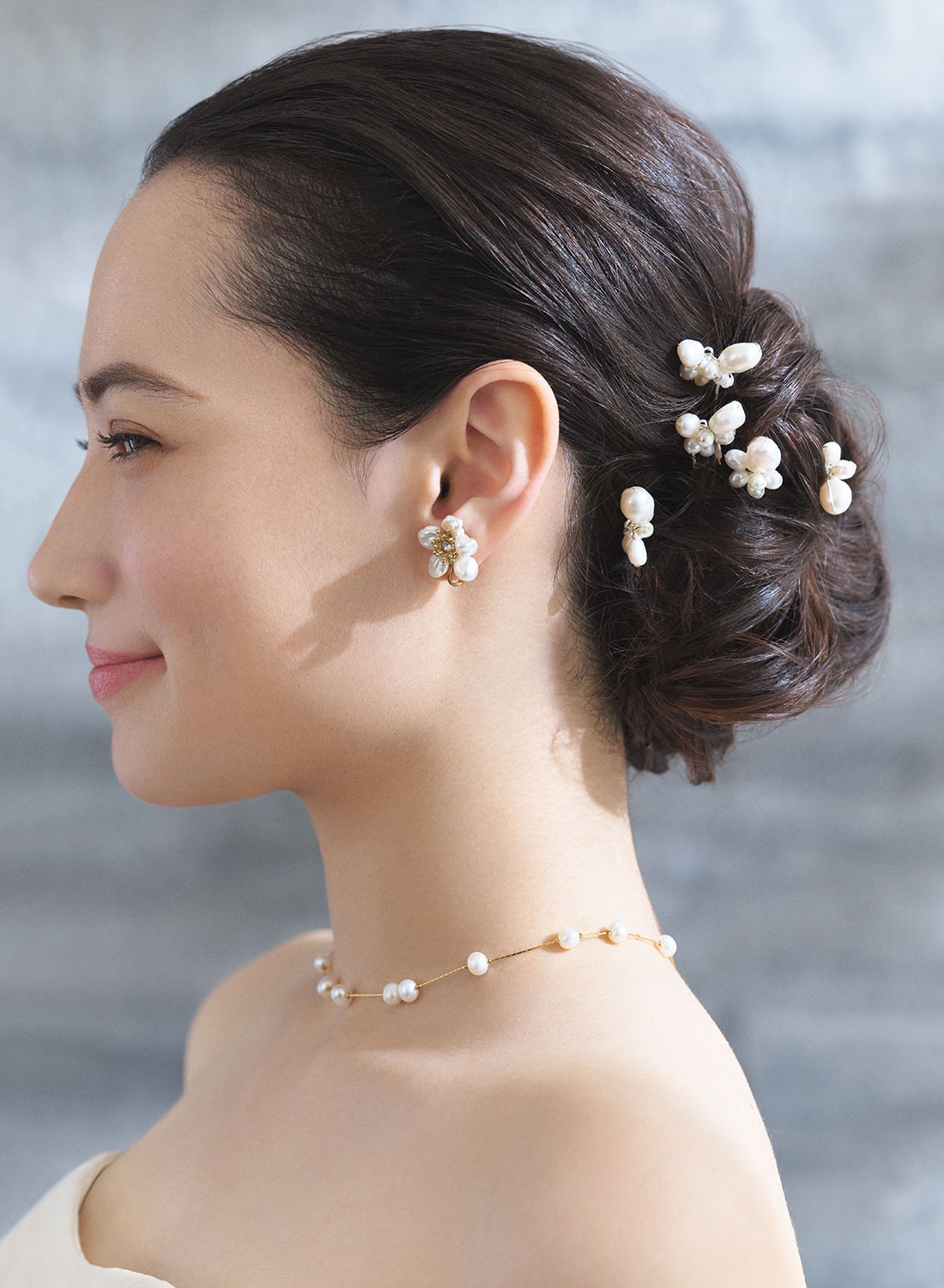 上品な輝きを放つ淡水パールのヘッドアクセサリー。シンプルながらも存在感のあるデザインが、どんなヘアスタイルにも美しく調和します。