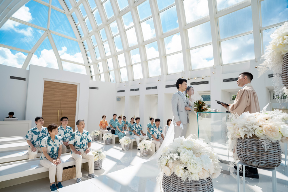 OKINAWA 沖縄 太陽が彩る自然の教会 2024.8.310:00 Chapel Info 会場名 太陽が彩る自然の教会 場所 オクマ プライベートビーチ & リゾート内 住所 沖縄県国頭郡国頭村字奥間913 収容人数 2名~24名 挙式可能日 12/31,1/1,1/2及び施設の特別行事日を除く毎日 バージンロード 約7.5m + Google Mapsで見る チャペル詳細へ